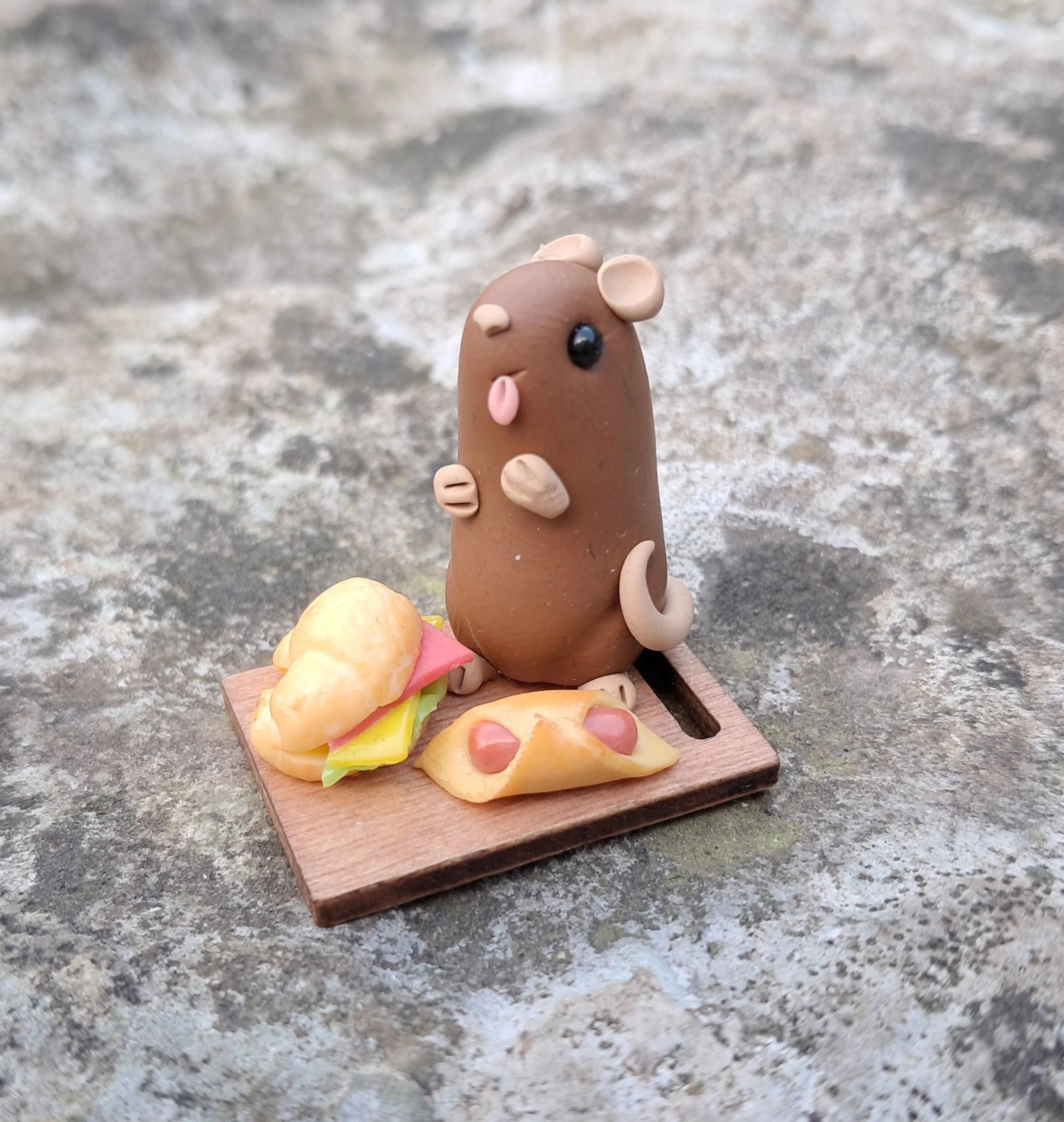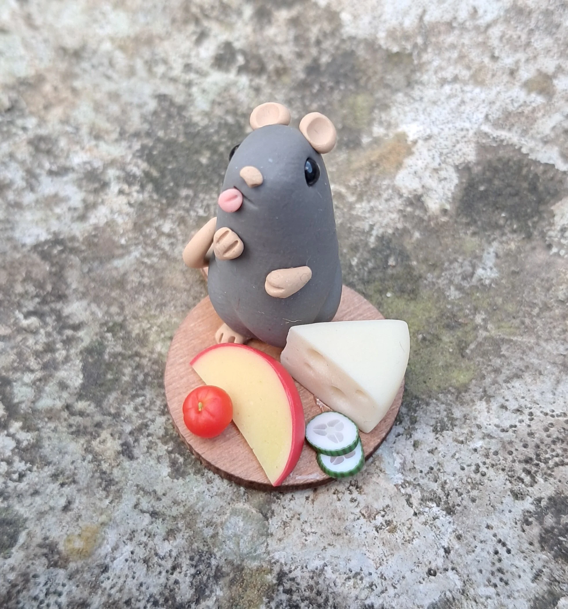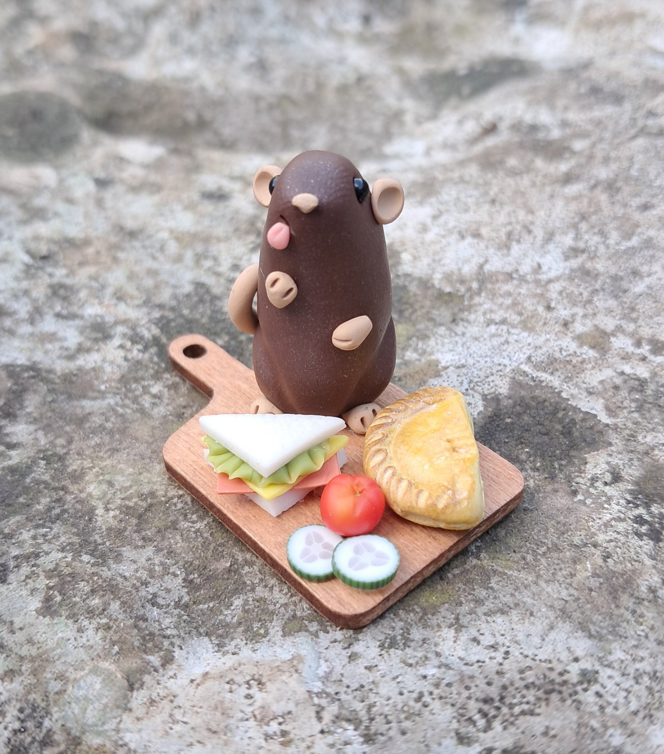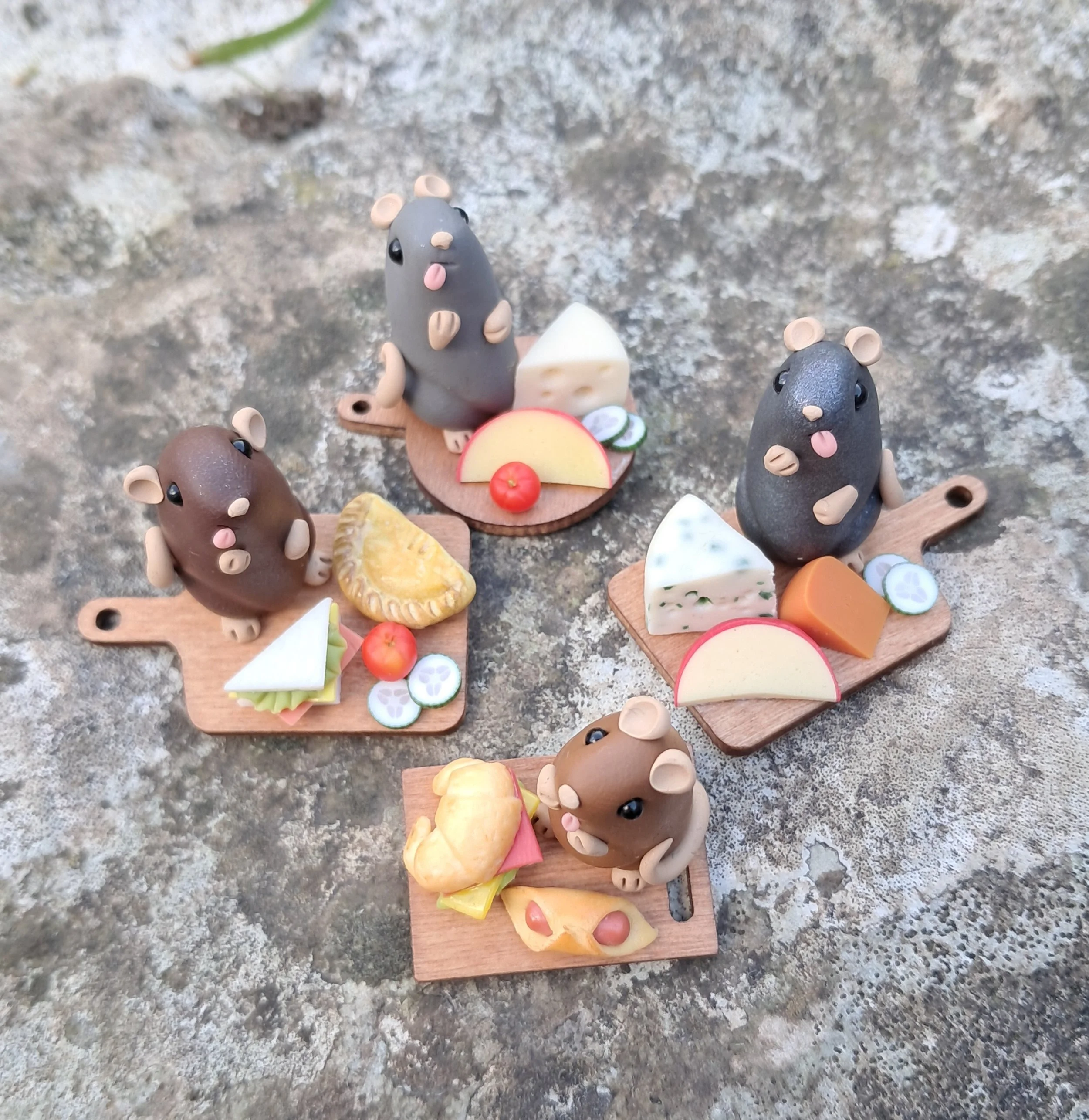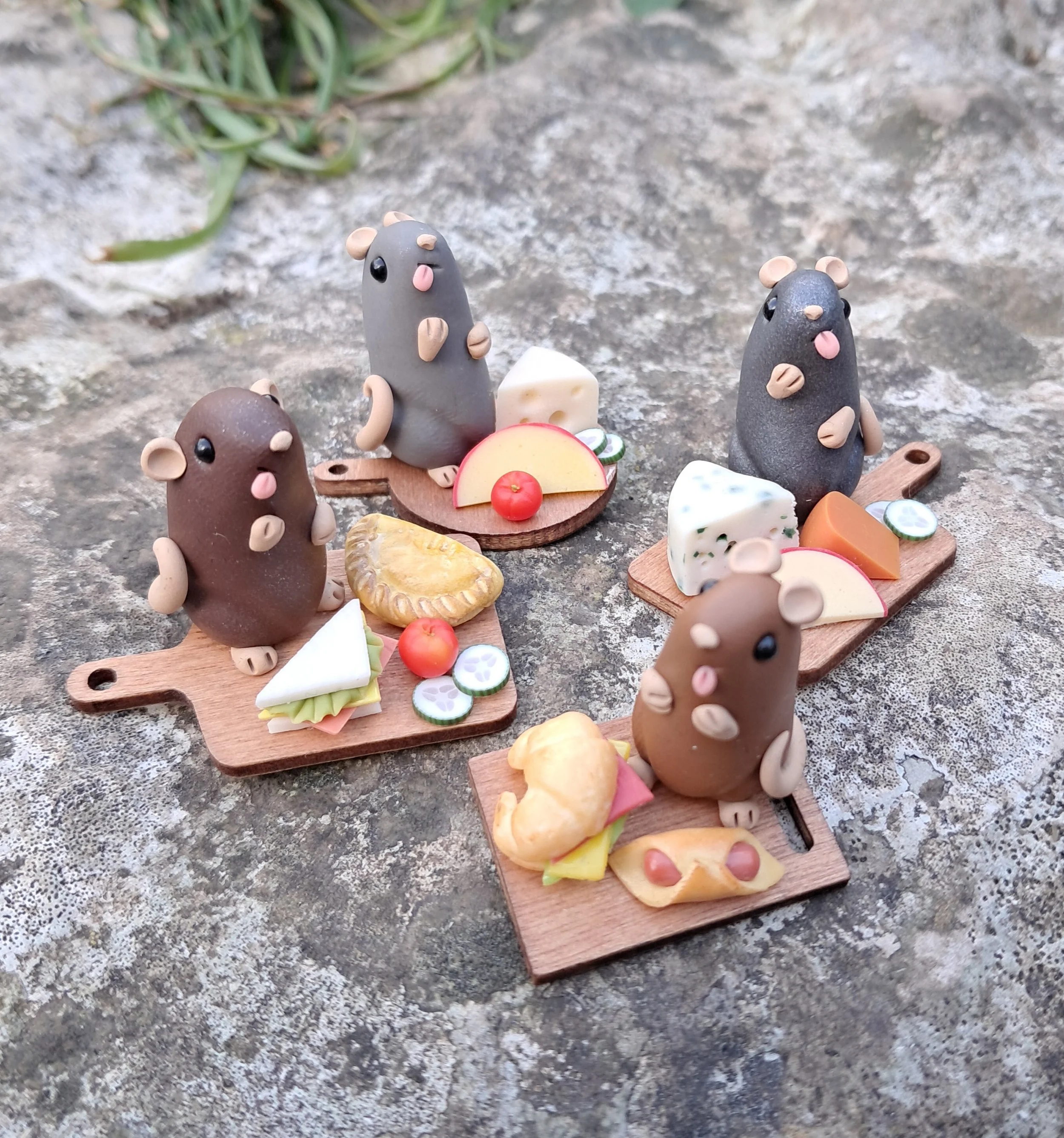 The 1 inch Macros are dreaming about tucking into their savoury treats while licking their lips. Cheese, veggies, sandwiches and pastries all waiting to be devoured. All handmade from polymer clay and displayed on a tiny wooden board. Choose your favourite treats from the menu.