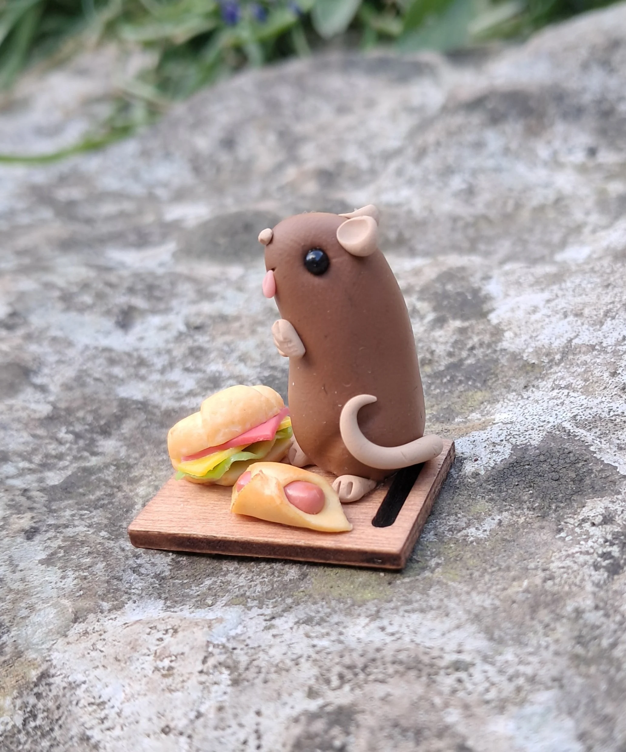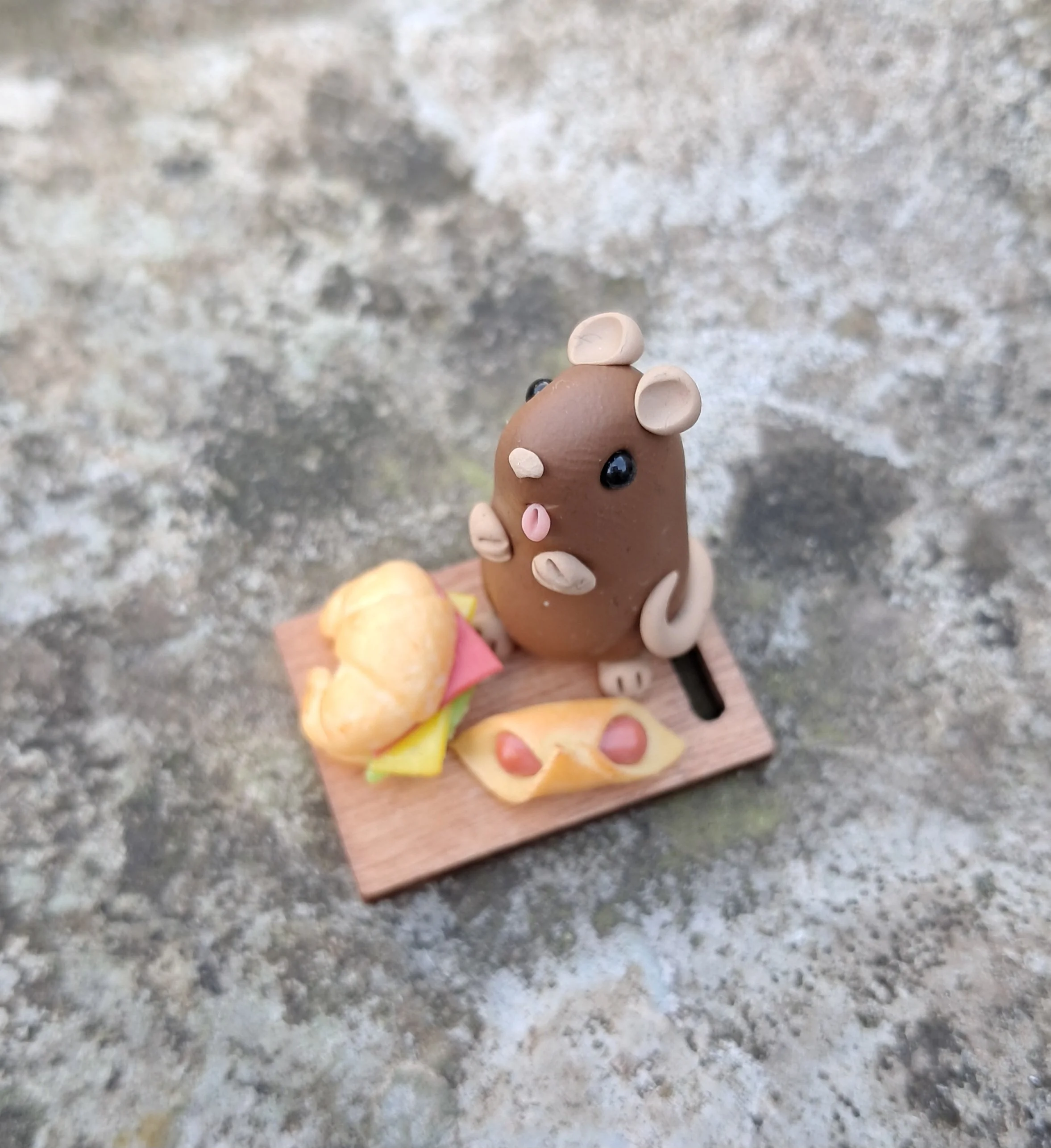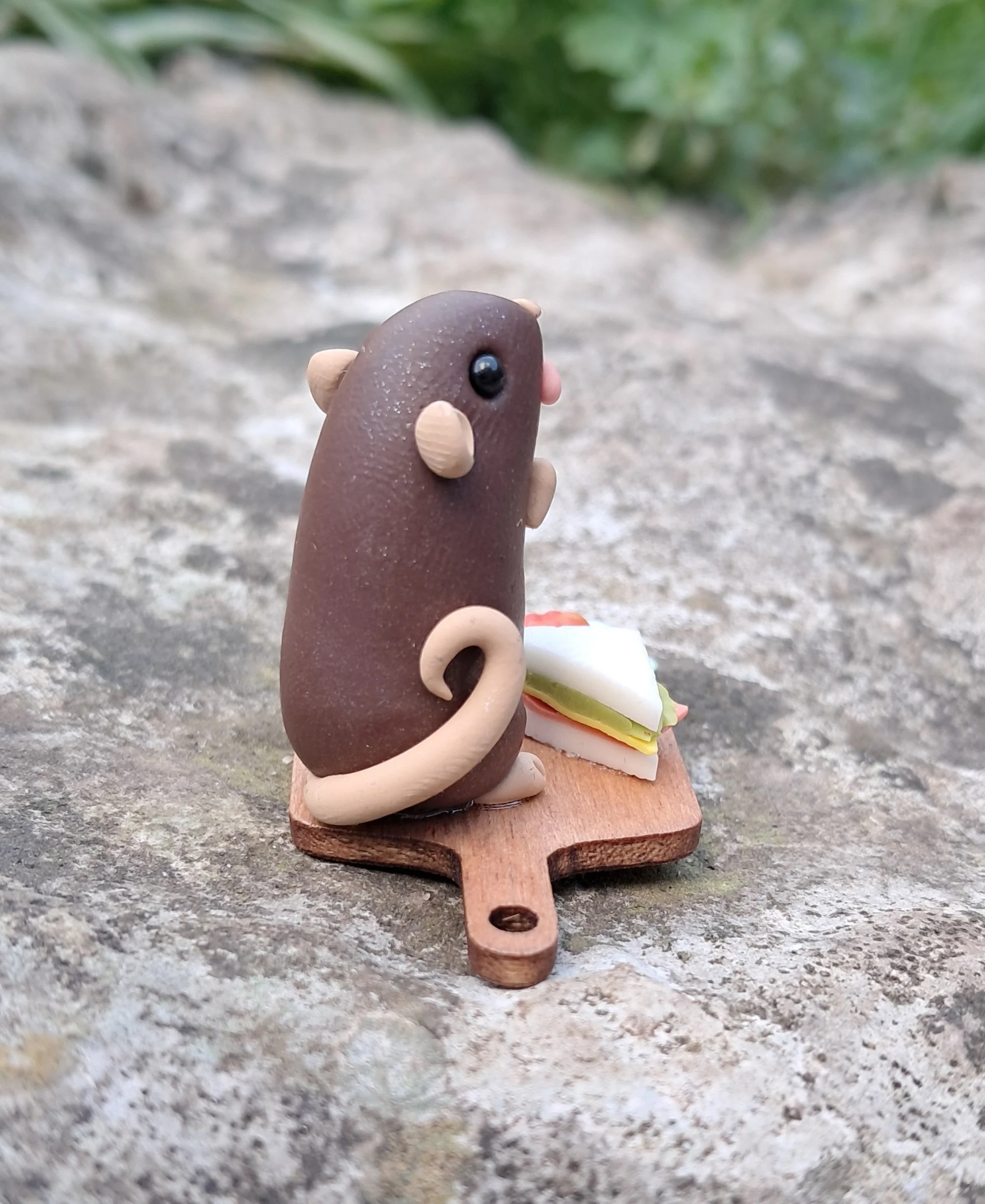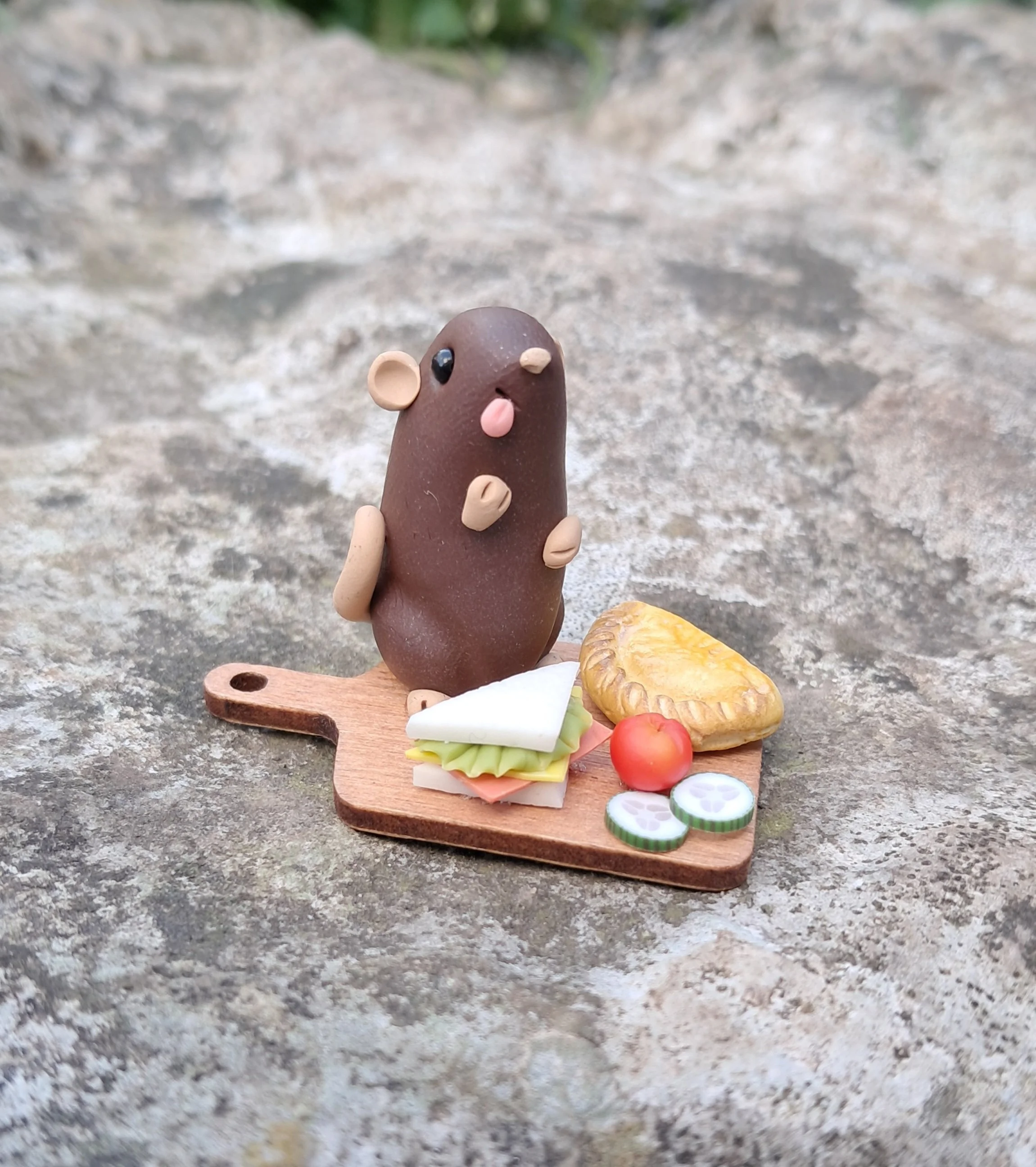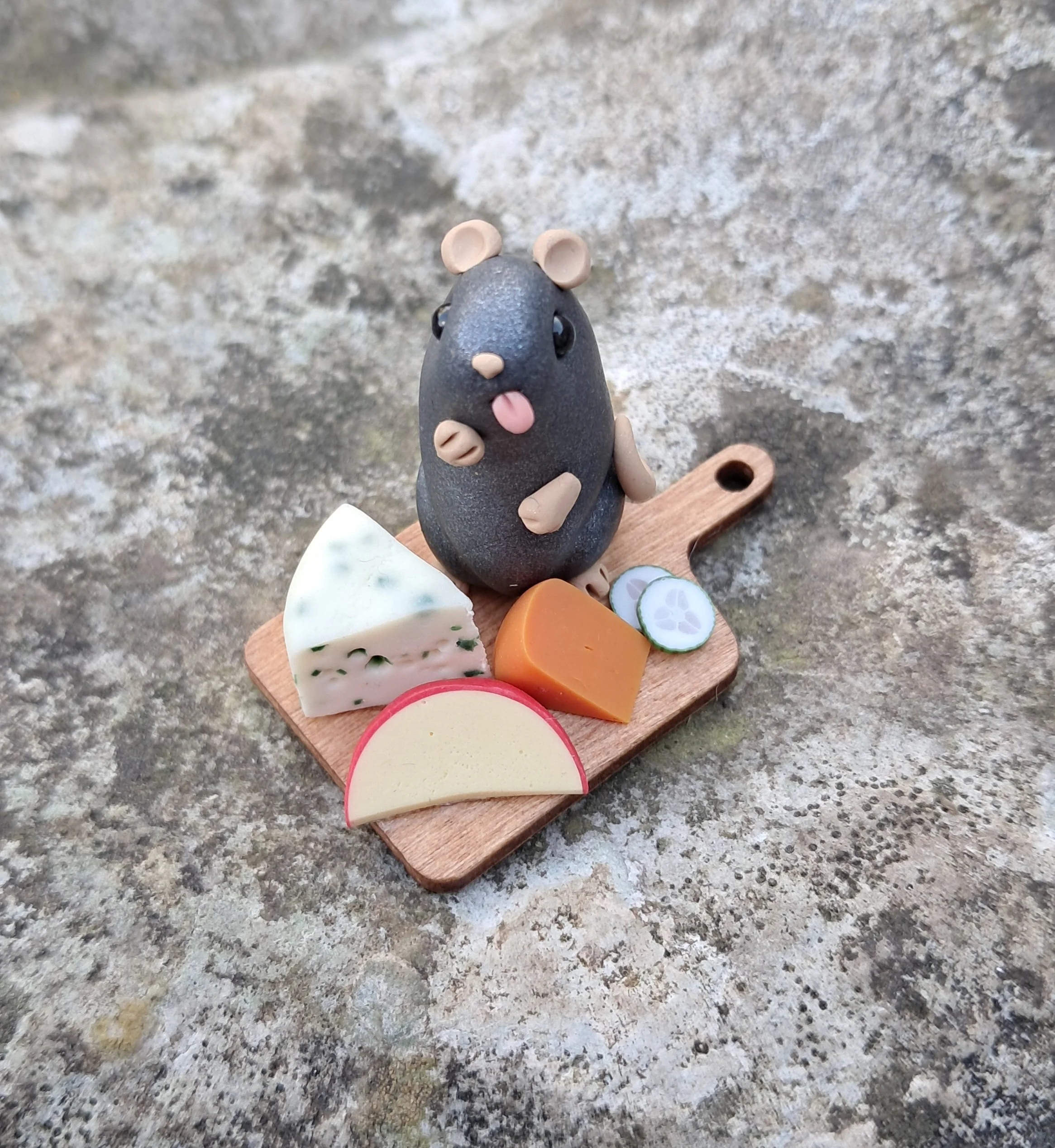The 1 inch Macros are dreaming about tucking into their savoury treats while licking their lips. Cheese, veggies, sandwiches and pastries all waiting to be devoured. All handmade from polymer clay and displayed on a tiny wooden board. Choose your favourite treats from the menu.